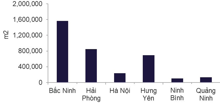 Điểm nhấn chiến lược trong Q4 2025 là làn sóng khởi công đồng loạt tại các địa bàn trọng yếu, tạo đà bứt phá cho nguồn cung tương lai. Cụ thể, tỉnh Ninh Bình dẫn đầu quy mô triển khai mới với tổng diện tích đạt 92.728 m2, theo sau là tỉnh Bắc Ninh với 84.000 m2 và thành phố Hải Phòng ghi nhận thêm 35.000 m2 diện tích nhà xưởng cho thuê.