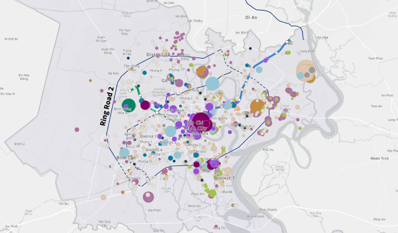 “Trong hai thập kỷ rưỡi từ 1990 đến 2015, các dự án bất động sản ở TPHCM có phần giới hạn sự phát triển trong phạm vi đường vành đai 2, chủ yếu tập trung trong bán kính 10 km từ trung tâm thành phố. Mô hình tăng trưởng tuân theo sự mở rộng tự nhiên dọc theo hạ tầng hiện có, chủ yếu là mạng lưới đường bộ, trong khi các dự án có định hướng giao thông công cộng vẫn còn vắng bóng”, bà Lê Thị Huyền Trang, Tổng Giám Đốc, Trưởng Bộ phận Tư vấn và Nghiên cứu JLL Việt Nam chia sẻ.