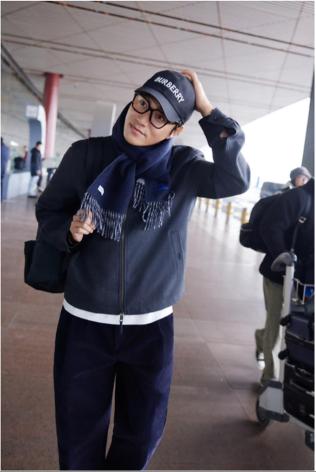 Ren Min diện Burberry tại Sân bay Quốc tế Thủ đô Bắc Kinh