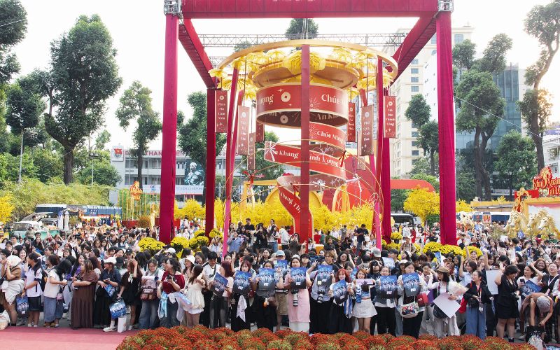 Dù có sự tham dự của lượng khán giả lớn, dòng người xếp hàng trật tự để nhận poster. Đặc biệt, 100 khán giả may mắn đầu tiên còn được tặng thêm xấp bao lì xì độc quyền của Gala Nhạc Việt 2026 như một món quà khai xuân ý nghĩa.