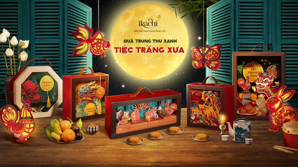 Ikachi là thương hiệu hơn 21 năm kinh nghiệm trong lĩnh vực kinh doanh giải pháp quà tặng sáng tạo của Công ty CP Mỹ Thuật Gia Long. Năm nay đánh dấu bước chân đầu tiên gia nhập đường đua quà tặng Trung thu nhưng không hề lép vế trước các đối thủ khác nhờ thiết kế sáng tạo khác biệt của mình. Bộ sưu tập Trung thu xanh “Tiệc Trăng Xưa” – không dừng lại ở một món quà mà còn mang những giá trị truyền thống trở lại cùng thông điệp ý nghĩa vì môi trường xanh. Năm nay, Ikachi lựa chọn tái hiện bức tranh đêm hội trăng rằm tuổi thơ thông qua các hộp quà với mong muốn tôn vinh nét đẹp văn hóa Việt.