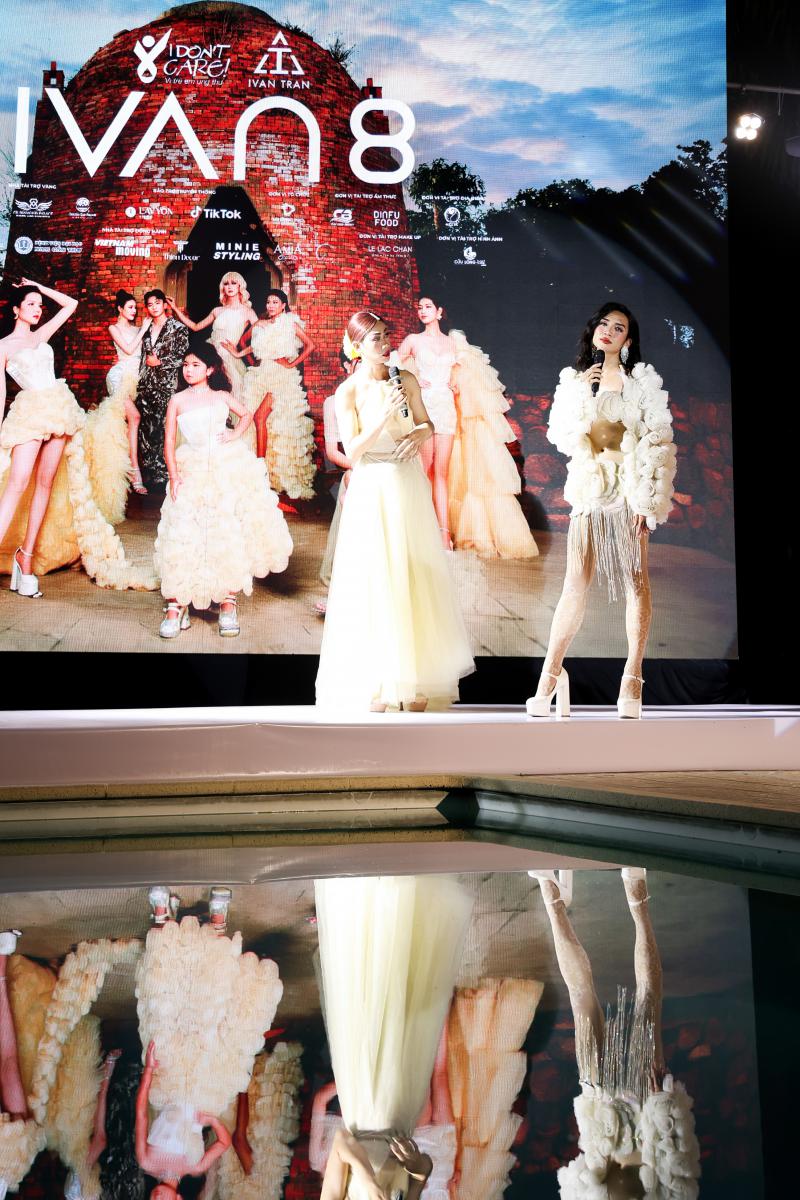 Đảm nhận vai trò vedette IVAN8 là Hoa hậu liên lục địa 2022 Lê Nguyễn Bảo Ngọc. Cô xuất hiện cùng áo dài Dáng Cầm Thi của nam nhà thiết kế. Trên sàn catwalk, Lê Nguyễn Bảo Ngọc tỏa sáng với phong thái sang chảnh lẫn gợi cảm. Trong khi đó, quán quân The New Mentor Lê Thu Trang nổi bật cùng một dây cổ vàng trắng PNJ Topaz AudaxRosa.