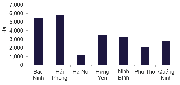 Tính đến hết Q4 2025, tổng nguồn cung tích lũy đất khu công nghiệp (KCN) tại thị trường miền Bắc đạt xấp xỉ 23.990 ha. Thị trường trong quý cuối năm tiếp tục duy trì đà tăng trưởng sôi động với sự bổ sung của khoảng 640 ha đất công nghiệp mới, đến từ ba dự án chiến lược: KCN Phúc Sơn (125 ha), KCN Quế Võ 2 – Giai đoạn 2 (277,64 ha) và KCN Đồng Văn V tại Ninh Bình (237 ha). Việc các dự án hạ tầng KCN liên tục được triển khai không chỉ củng cố vị thế dẫn đầu của các thủ phủ công nghiệp hiện hữu như Bắc Ninh với 5.452 ha và Hải Phòng với 5.796 ha mà còn cho thấy sự mở rộng mạnh mẽ sang các khu vực vệ tinh tiềm năng như Ninh Bình và Phú Thọ.