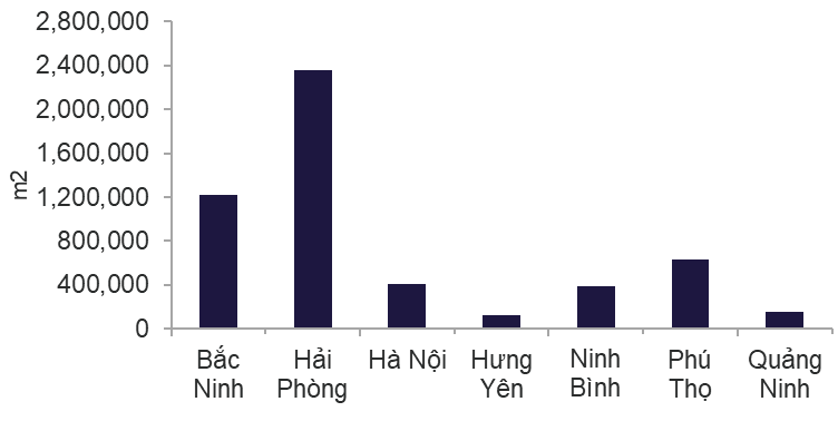 Giai đoạn 2026 - 2029, miền Bắc dự kiến đón nhận 656.000 m2 nhà kho xây sẵn (RBW). Hưng Yên, Ninh Bình và Hải Phòng sẽ là những địa phương dẫn dắt nguồn cung đất mới, trong khi Bắc Ninh tiếp tục khẳng định vị thế trung tâm kho vận tương lai với gần 400.000 m2 diện tích sàn.
