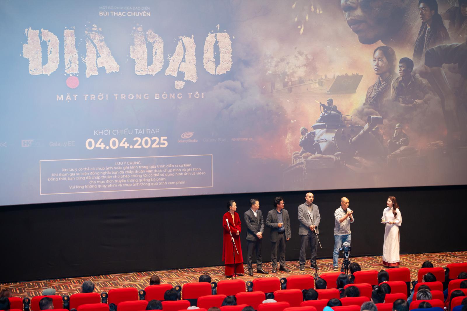 Sau những tràng pháo tay vang dội tại Thành phố Hồ Chí Minh, sự kiện ra mắt phim điện ảnh Địa Đạo: Mặt Trời Trong Bóng Tối của đạo diễn Bùi Thạc Chuyên tiếp tục hành trình đến với Hà Nội. Với sự háo hức và mong chờ, đông đảo khán giả, các nghệ sĩ và những người yêu điện ảnh tại Thủ đô đã hội tụ để cùng thưởng thức một tác phẩm giàu cảm xúc, tái hiện chân thực trang sử hào hùng của thế hệ cha ông.